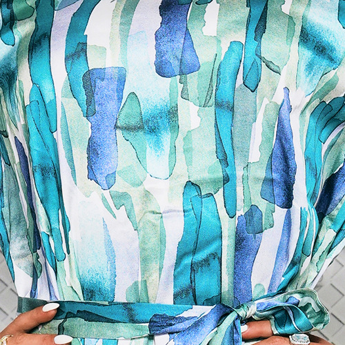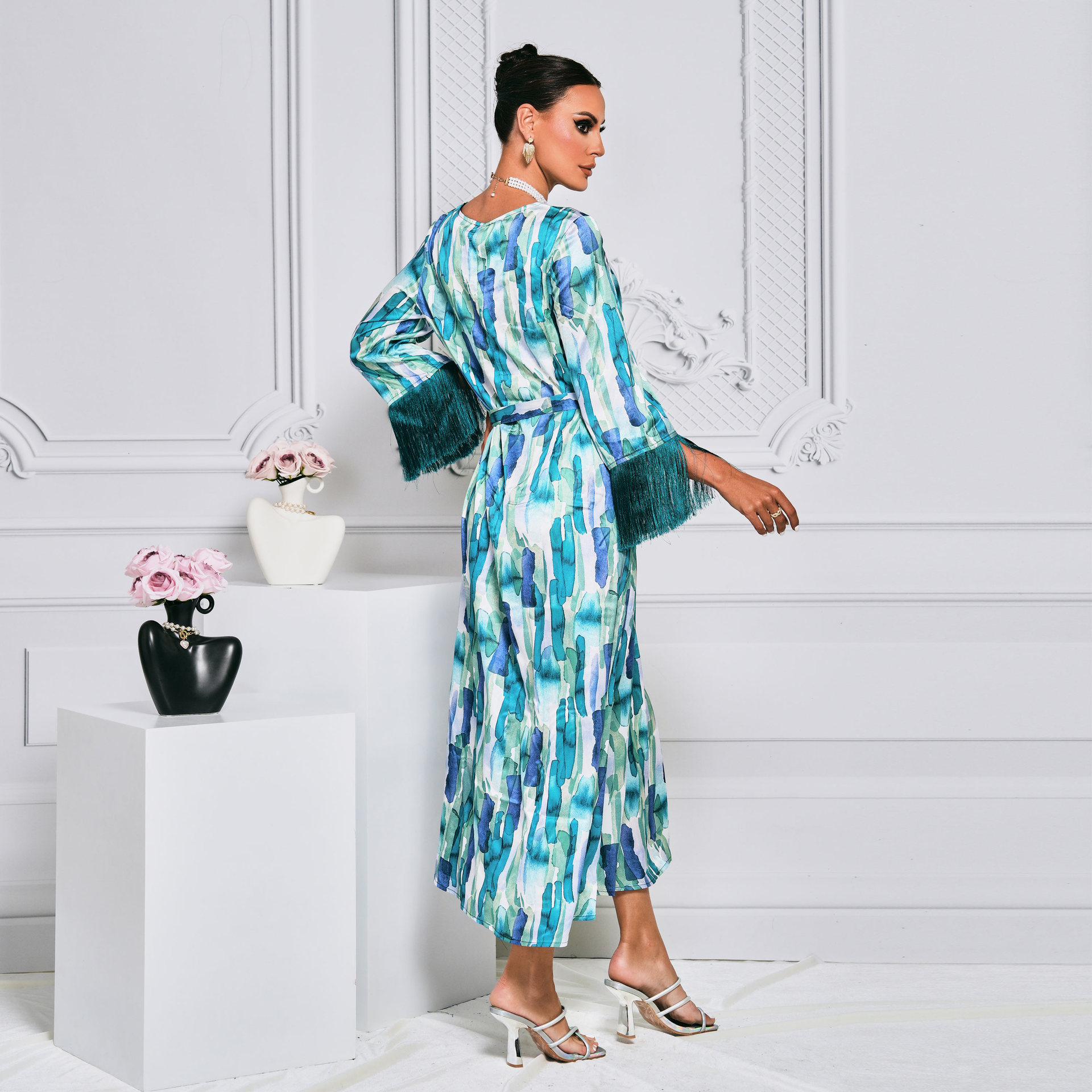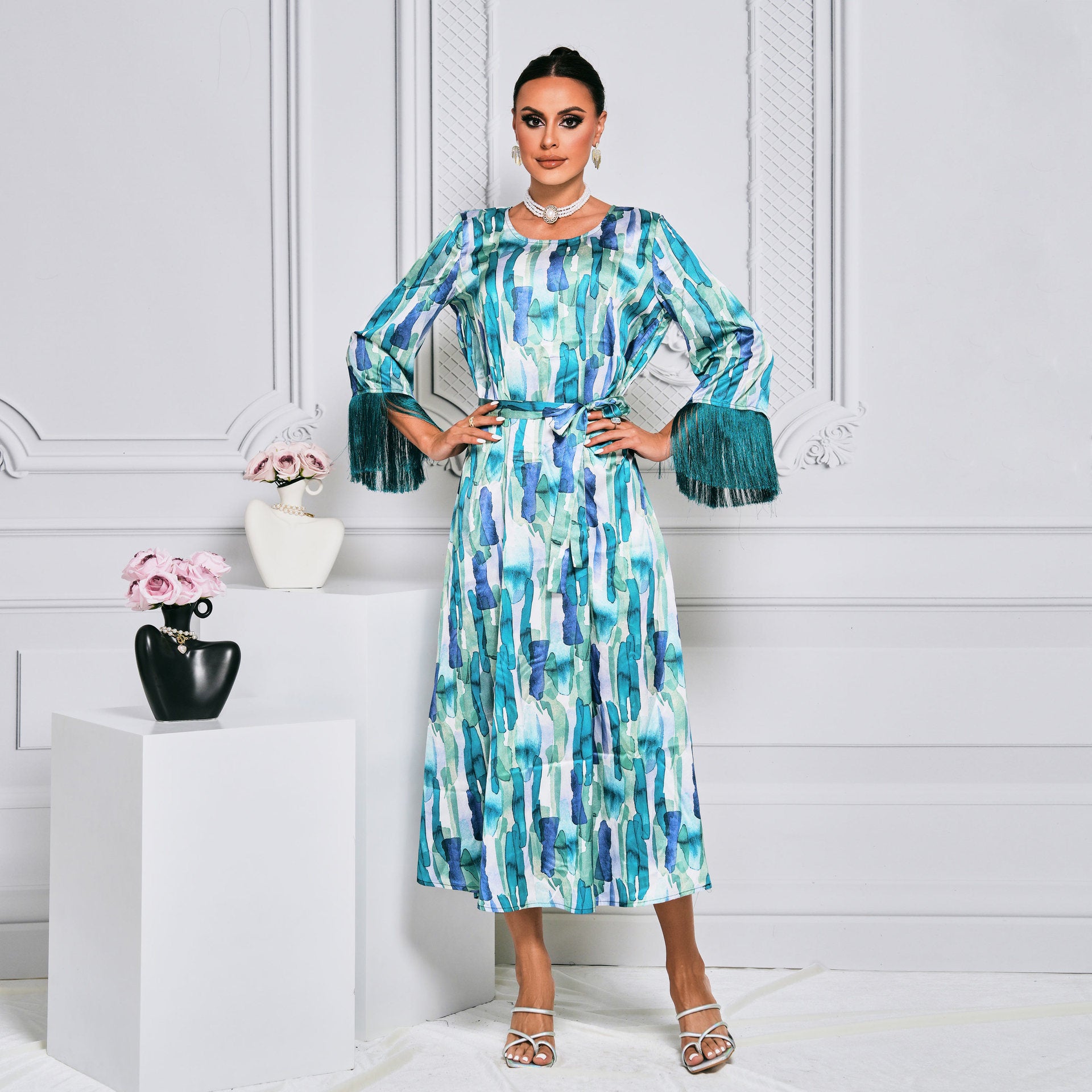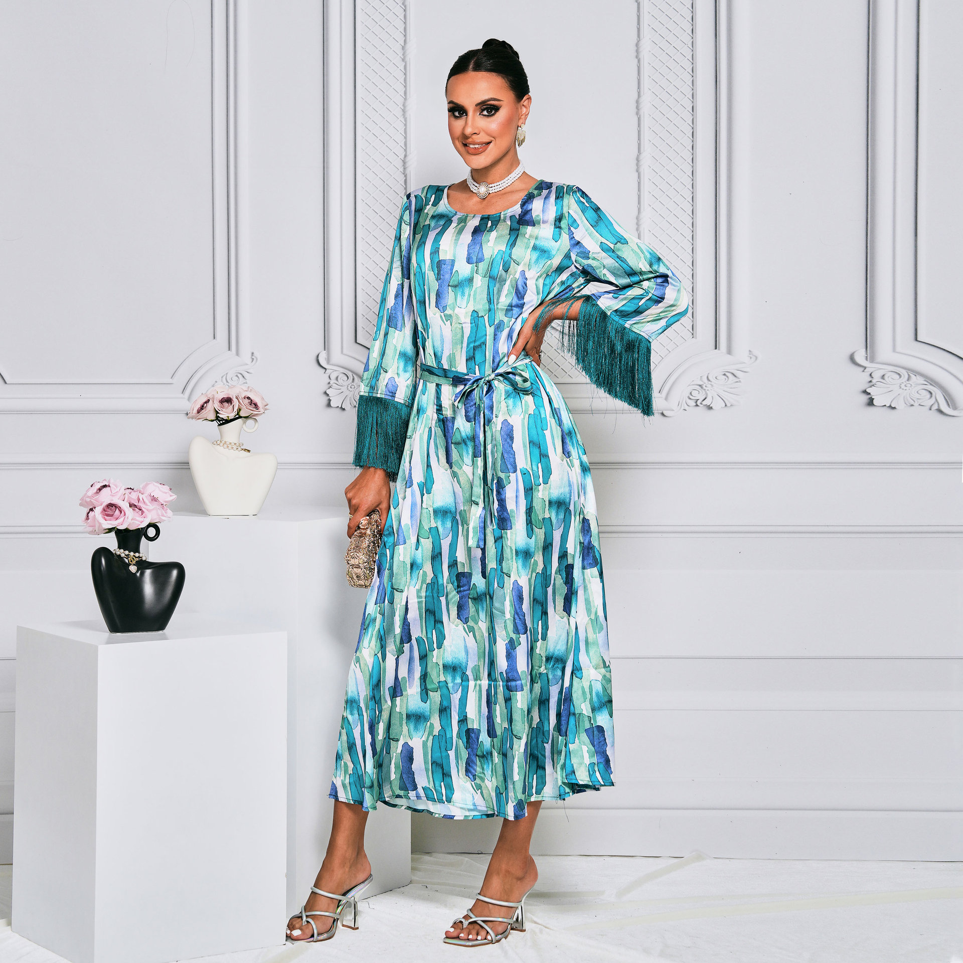 Long Pattern Long Sleeve Waist Trimming Printing Dress